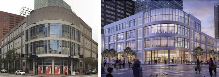 Bir kentsel büyük kutu perakende mağazası, üst katlarda ofis kiracıları ve birinci katta caddeye bakan restoranlar (Cincinnati, Ohio) ile karma kullanımlı bir dönüşüm gerçekleştirdi. Bir zamanlar tek bir kiracıya (Macy's) ev sahipliği yapan dönüştürülmüş bina, zemin kattaki kafelerin yanı sıra; birden fazla ofis kiracısına ev sahipliği yapacak. Bu proje aynı zamanda binaya gelen doğal ışık miktarını da önemli ölçüde artıracaktır.