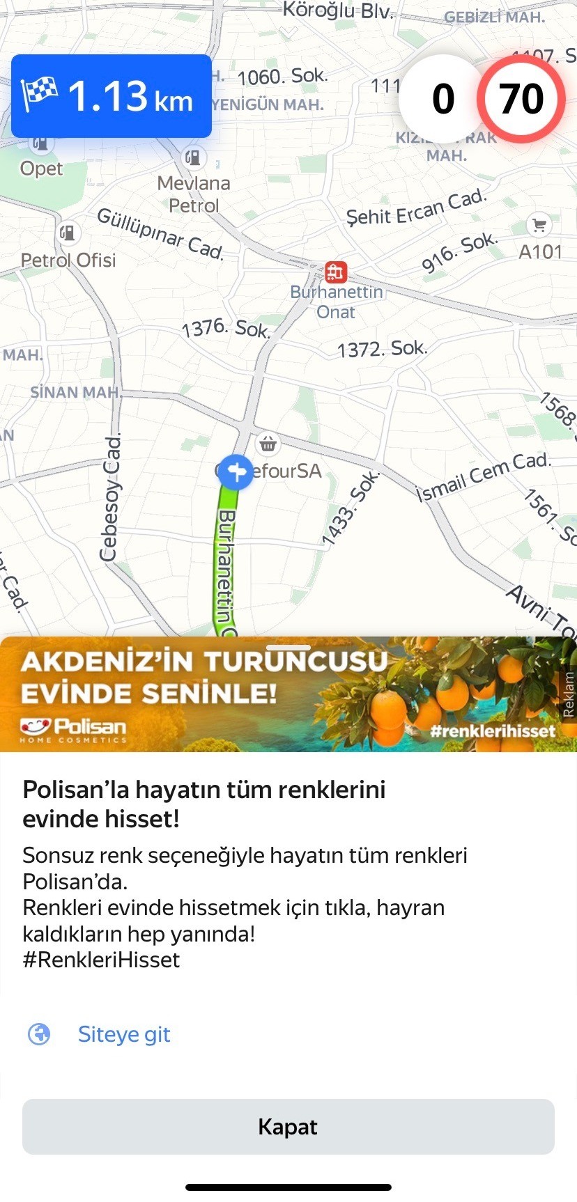 Yolculuk sırasında karşılaşılan renklere en uygun boya tonlarının Yandex’in Zero Speed Banner reklam modeli ile kullanıcıların karşısına çıktığı proje, lavanta bahçelerinin, denizlerin ya da orman manzaralarının renklerini evlerinde hissetmek isteyenlere konuma uygun öneriler sunarak büyük beğeni toplamıştı.