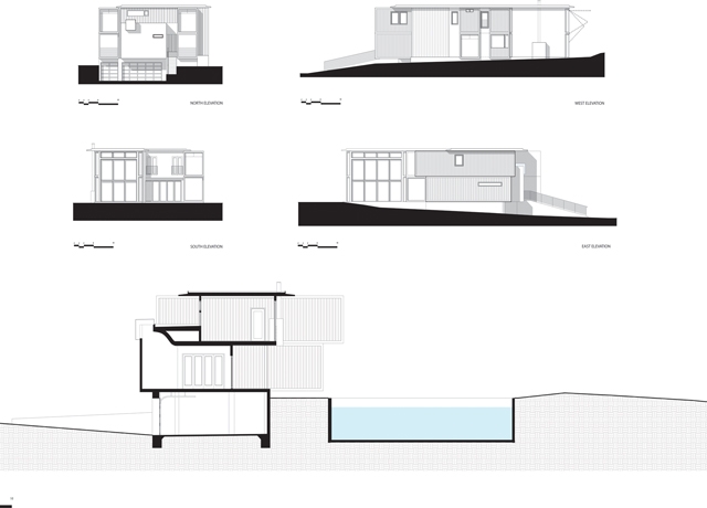 Proje, farklı boyutlardaki sekiz konteynerin konvansiyonel bina metotlarıyla birleştirilmesi sonucu ortaya çıkıyor. Metal konteyner duvarları kullanım alanlarının sınırlarını belirlerken ahşap ve çelik ürünler aralarında bir sanatçının stüdyosunun da olduğu ebeveyn odası ve yüksek tavanlı salon gibi alanları çerçevelendiriyor. Ayrıca yerleştirilmiş bir başka konteyner de havuz olarak işlev görüyor. Kapı ve pencereler duvarların kesilmesiyle yerleştirilmişler fakat bunun dışında estetik açıdan konteyner görüntüsünü değiştirmek için bir çaba sarf edilmemiş.