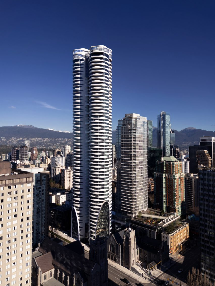 Revery Architecture mimarlık stüdyosu, Vancouver'da erken 20. yüzyıldan kalma bir kiliseye entegre olan beyaz, silindirik cepheleriyle dikkat çeken bir gökdelen tamamladı. Westbank tarafından geliştirilen Butterfly, Vancouver'da 178,6 metreye yükselerek, şehrin üçüncü en yüksek yapısı oldu.