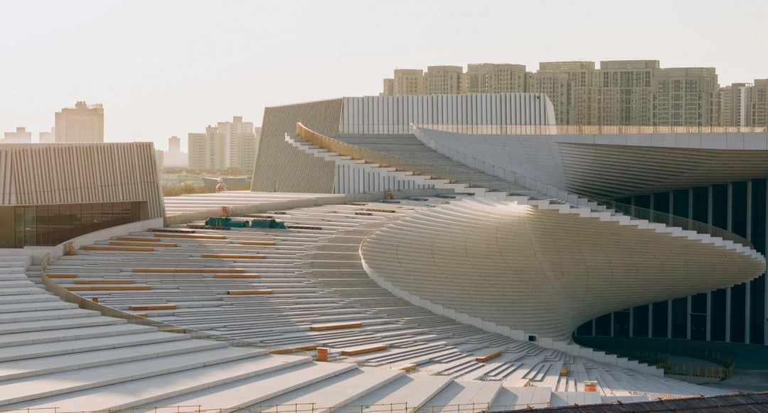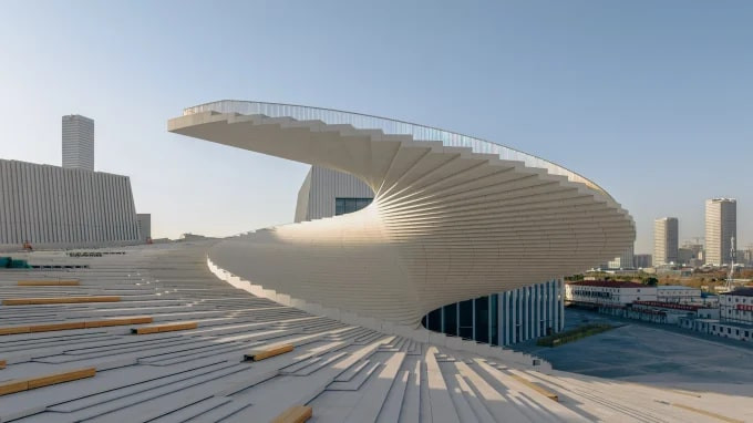 Çin’in en prestijli kültürel projelerinden biri olan Şanghay Büyük Opera Binası, ünlü mimarlık ofisi Snøhetta imzasıyla tamamlanıyor. Huangpu Nehri kıyısında, West Bund bölgesinde konumlanan yapı, heykelsi spiral çatısı ile şehrin silüetine yeni bir anlam katıyor. İnşaatın son aşamasına girilirken, bina 2025 sonbaharında kapılarını açmaya hazırlanıyor.