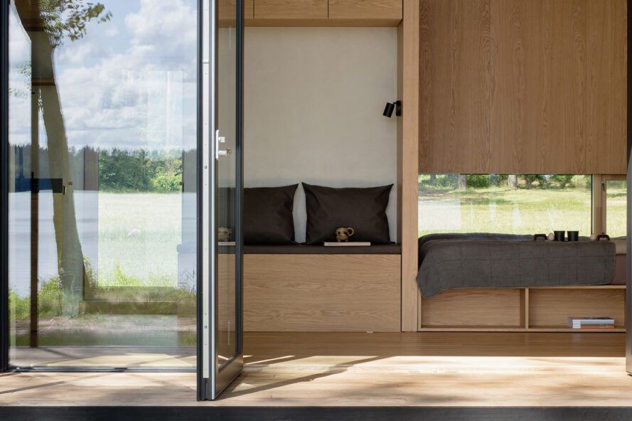 Ayrıca ev modüler bir şekilde inşa edilmiş ve standart bir temel gerektirmez. Bu nedenle sürdürülebilir mimari ev bir gün içinde monte edilebilir ve kurulabilir. Buna güzel ahşap panelli iç mekanları, şık siyah kaplamalı soba ve lavabo armatürlerini de ekleyince ve neredeyse hiçbir maliyeti olmayan güzel bir ev karşıdadır. Küçük evde ayrıca sürdürülebilir mimaride kullanılan malzemeler dikkat çeker.