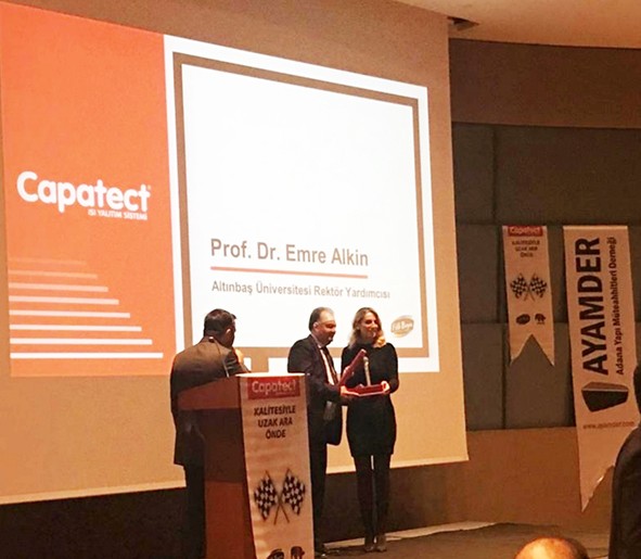 Programın sonunda katkı ve katılımlarından dolayı Altınbaş Üniversitesi Rektör Yardımcısı Prof. Dr. Emre Alkin ve Filli Boya Yalıtım Pazarlama Müdürü Işıl Aksoy’a plaketleri takdim edildi.