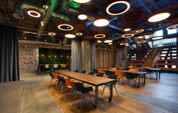 Kulübe, küçük bir yerel kırmızı tuğla podyumuna oturmakta ve bu, yapının bitişiğindeki sığ eğimi devam ettirerek, mimarların, kulübe açık durumdayken kullanılacak bir "doğal oditoryum" olarak tanımladıkları alanı yaratmaktadır.