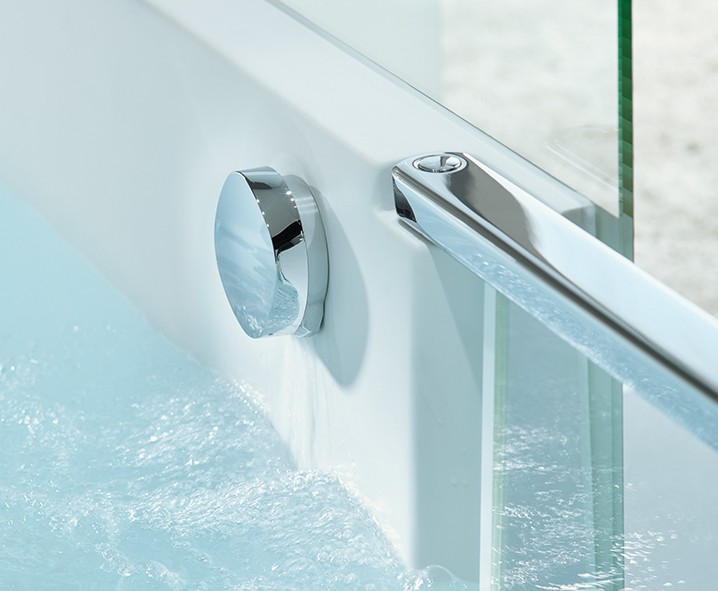 Minder, küvet içerisinde dinlenirken ilave bir fonksiyon sağlar; ayarlanabilir bir arkalık ya da raf olarak da kullanılabilir. Küvet, kapı kapalıyken, içinde dinlenebileceğiniz rahatlatıcı bir küvet ya da bir ayak küveti olarak kullanılabilir. ESG cam kapıdaki güvenlik kilidi, banyo sırasında kapının yanlışlıkla açılmasını önler.