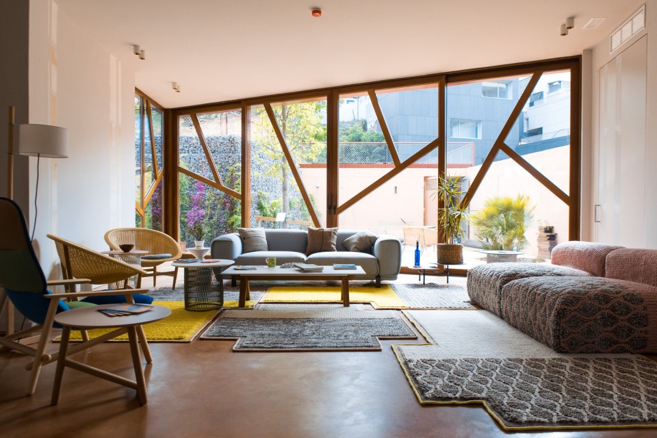 Her oda yeşilliklerle çevrilidir ve terasların, ağaçların ve pergolaların durumu, çevredeki hastane tesislerini gizlemek ve Kádada Center kullanıcılarının mahremiyetine saygı göstermek içindir. Buradaki zemin kat, yakındaki hastanenin onkoloji alanıyla aralarındaki asfalt alandan doğrudan bağlantısı olan binanın ana girişidir. Bu alan aynı zamanda acil durumlarda itfaiyecilere erişim sağlar.