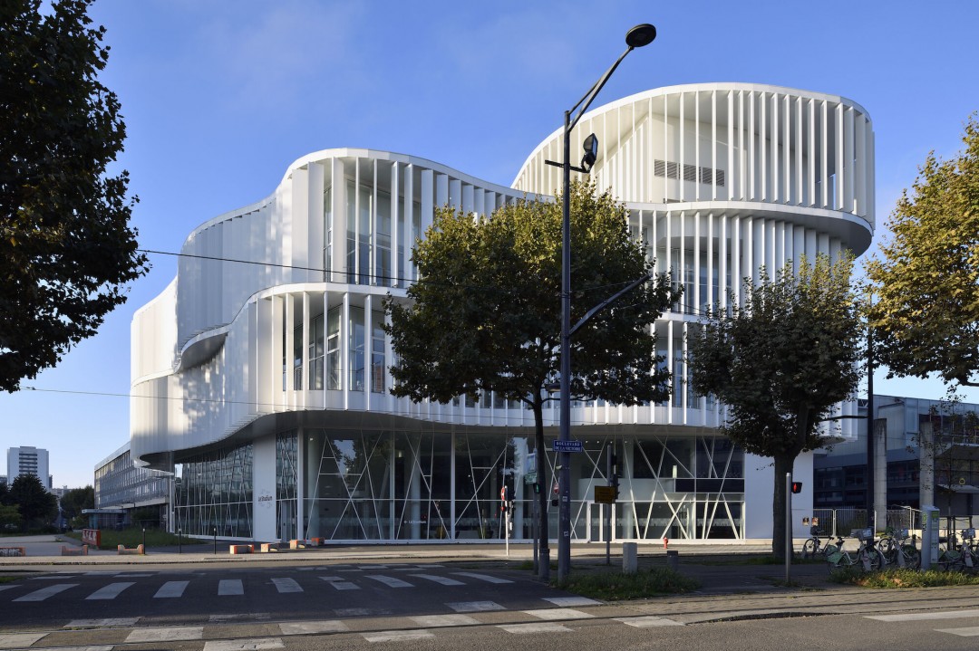 Tarihi merkez ile Campus de l'Esplanade arasındaki arayüzde belirgin bir şekilde yer alan sürdürülebilir mimari proje, şehirden kampüse girişi duyuruyor. Mimarlar kentsel duruma yanıt olarak dış dünyaya iki farklı koşul sunuyor: yoldan geçenleri içeri girmeye davet eden büyük ölçüde şeffaf bir zemin kat ve yukarıda açıklılık ve hareketliliği ifade eden kıvrımlı bir form alan bir ana gövde…