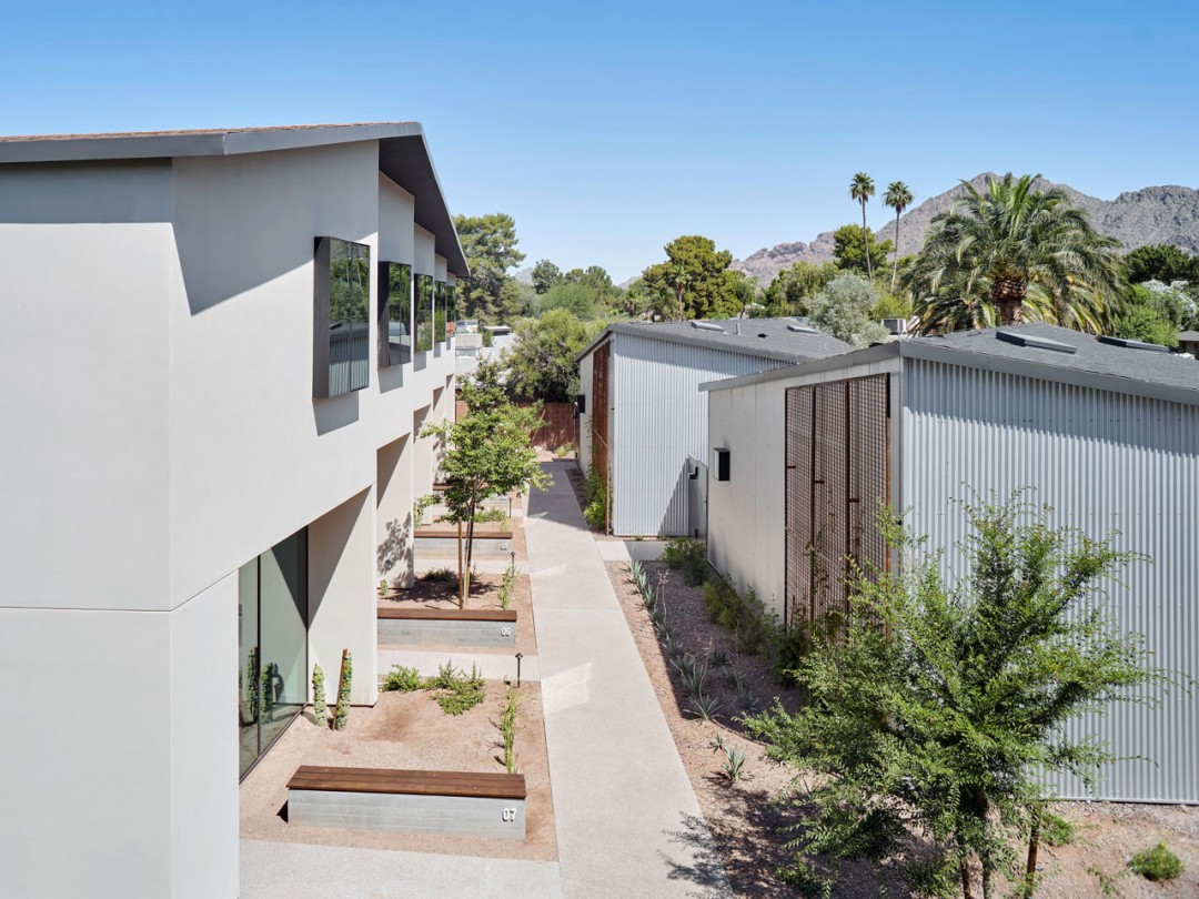 Yürünebilir avlularla birbirine bağlanan 11 şehir evinden oluşan modern, konforlu ve sofistike yeni koleksiyon, Phoenix'in mimari açıdan dikkate değer Arcadia semtinde bir konut kompleksidir. Bir ve iki katlı konut birimleri, özel bahçeler, yemyeşil yürüyüş yolları ve ortak alanlar etrafında düzenlenmiş. Konut birimleri yaklaşık 13.000 fit karelik kompakt bir inşaat alanını kaplıyor ve evin birçok bölge sakini için erişilebilir olmasını sağlayan ekonomik bir yaklaşımla inşa edildi.