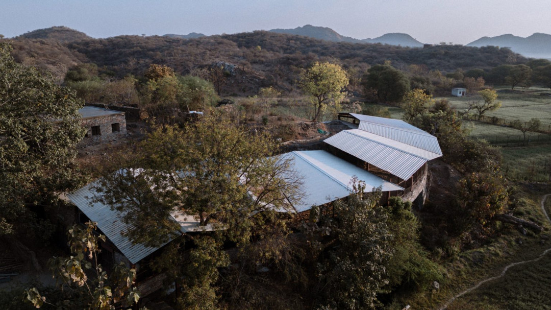 Gaushala, Aravalli Tepeleri’nin kalbinde, kayalık bir yükseltinin kenarına konumlandırılmış. Bu tercih, çevredeki tarım arazilerini ve ağaçları korumak amacıyla yapılmış. Yapı, doğal dokuya zarar vermemek için mevcut ağaç ve kaya oluşumları etrafında şekillendirilmiş.