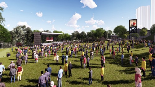 5 bin kişilik açık aktivite alanı, yeşil zemine sahip olarak tasarlanmış ve ses izolasyonu doğal bitkilerle sağlanacak şekilde düzenlenmiş. Bu alan çok amaçlı düşünülerek toplu spor aktiviteleri, festivaller, konserler gibi aktivitelere imkân verecek şekilde planlanmış.