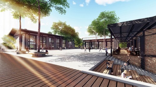 Nitelikli, büyük bir park olarak tanımlanabilecek projenin yaklaşık %85’ini yeşil alanlar oluşturuyor ve yapılaşma belirli bir noktada toplanarak yeşil alan bütünlüğü sağlanıyor. Arazide yer alan mevcut eğim, yapıların kademeli olarak yerleşmesine imkân sağlamış. Projenin ana odağı olan meydan ve etrafındaki birimler bodrum katta bütünleştirilerek bölgenin otopark ihtiyacını karşılamış. Endüstriyel bir yaklaşım ile tasarlanan yapılarda geniş saçaklara, taş duvarlara ve çelik kolonlara yer verilmiş.