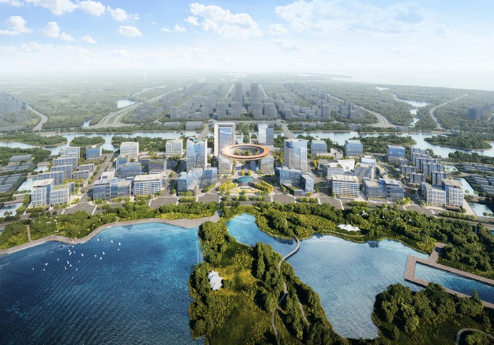 Şanghay Lingang Özel Bölgesi'nin en önemli özelliklerinden biri, tüm bölgenin tasarımını demirleyen ve büyük ölçekli bir merkez parçası olan “The Ring” olacak. Bu dairesel merkez, dirsekli gözlem güvertesi ve müzeyi de içine katarak, yakınlardaki Dishui Gölü, Şanghay ve Pasifik Okyanusu'nun 360 derecelik manzarasını sunarken aynı zamanda kültürel deneyimler için alan sağlayacaktır. Dört karma kullanımlı kuleye sahip olan ticaret merkezi, uzun, kavisli açıklıkları ve yapısal camları birleştiren heybetli yapı formunu destekliyor. Ring'in tasarımı, yapı mühendisi JAE ve cephe danışmanı RFR ile yapılan iş birliğinin sonucudur.
