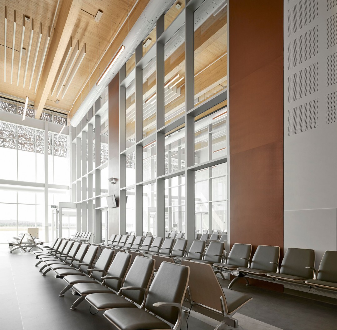 Québec'in Abitibi-Témiscamingue bölgesinin başkenti Rouyn Noranda'da bulunan bu sürdürülebilir mimari projelerden yeni hava terminali, başkentin görünürlüğünü artırmaya ve havalimanının bölgesel bir merkez olarak konumunu güçlendirmeye hizmet ediyor.