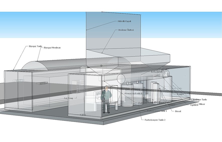 “Ayazağa Yerleşkesinde, kaynağında ayrı toplanmış yaklaşık 1.6 ton organik katı atık, kurulacak olan Atıktan Enerji Üretim Tesisinde biyokimyasal dönüşümlere uğrayarak yenilenebilir enerji kaynağı olan metan gazı içerikli biyogaza dönüştürülecek. Oluşan biyogaz, jeneratör ile elektrik ve ısı enerjisine çevrilerek günlük 30 kWh’lık enerji kazanımı sağlanacak. Üretilen elektrik kampüs içi faaliyetlerde, üretilen ısı ise tesisi ısıtma amacıyla değerlendirilecek. Tesisteki prosesler sonucu oluşan atık su, kurulacak olan yapay sulak alanda arıtılacak ve kampüs içi sulama faaliyetlerinde kullanılmak üzere sulama suyu elde edilecek.”