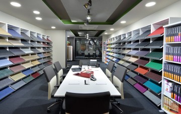 Yakındaki bir fabrikadan temin edilen karolar 45 derecelik profiller halinde kesiliyor ve düzenli aralıklarla yumuşak çelik plakalardan oluşan bir çerçeve içine monte edilerek yapının etrafında bir tampon oluşturuyor. A Threshold'un geleneksel soğutma yöntemlerinden esinlenerek tasarladığı Terra Comb, evaporatif soğutma prensibiyle çalışan bir perde içeriyor. Yaz aylarında su testilerinin serinletici etkisine benzer şekilde, bu perde bir damla sulama sistemi ile entegre edilmiş. Bu sistem, ekici kutularını verimli bir şekilde sularken, terracotta karoların üzerine hafifçe su serperek ferahlatıcı bir iç mekan sıcaklığını etkili bir şekilde korur. Cephe boyunca yetiştirilen yemyeşil bitki örtüsü, biyolojik çeşitliliğe sahip bir ortamı teşvik ederek vahşi yaşamı cezbediyor ve sürdürülebilir kentsel yaşam için bir örnek oluşturuyor.