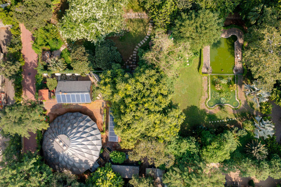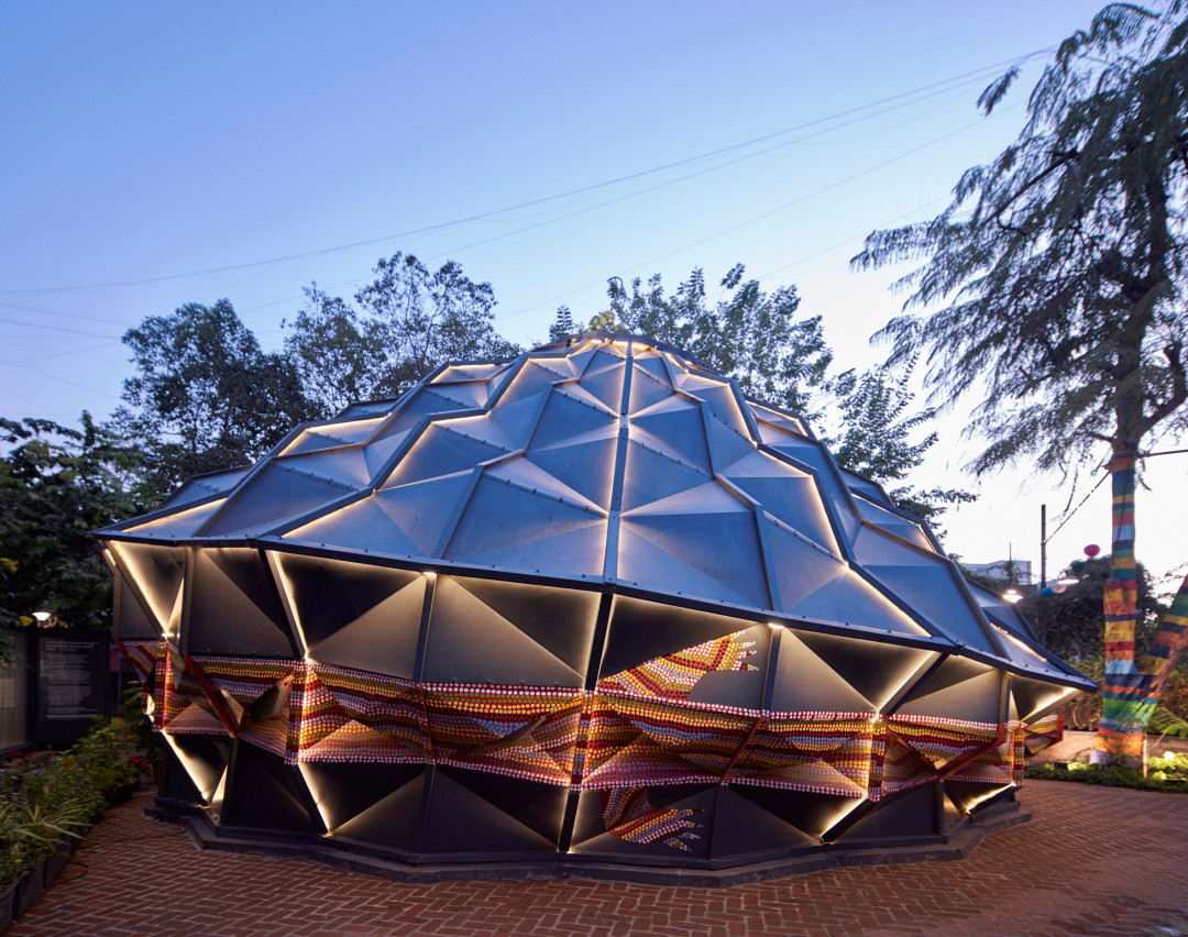 Ahmedabad merkezli Andblack Design Studio, Amerikalı mimar Buckminster Fuller'in çalışmalarından ilham alarak Hindistan'da Darwin Bucky isimli sökülebilir bir etkinlik mekanı oluşturdu. Sürdürülebilir mimari mekan Andblack Design Studio tarafından 100 kişiye kadar sergi galerisi, belediye binası veya performans mekanı olarak kullanılmak üzere tasarlandı. Birkaç gün içinde kolayca monte edilip sökülebilmesi planlanan yapı, düz bir biçimde paketlenebilen ve çeşitli yerlere nakledilebilen prefabrik bir set olarak geliyor.