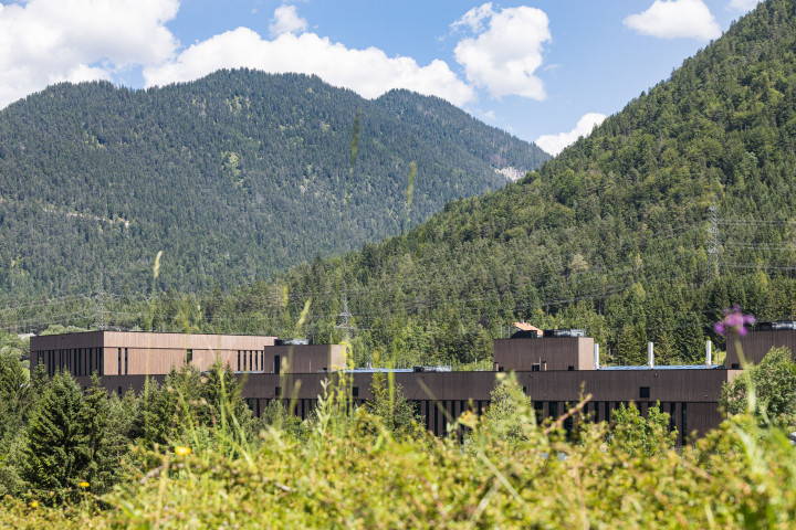 Simon Moosbrugger’in tasarladığı yeni yapı, ana bina ve ek binadan oluşuyor. İnce ahşap cephe ve özenle belirlenen yükseklik, yapının çevredeki köy mimarisiyle bütünleşmesini sağlıyor. Güçlendirilmiş beton elemanlarla yapılan ek bina, patlama ve yangın koruma gibi güvenlik önlemlerini karşılamak üzere planlandı. Ek bina ile ana üretim salonu arasındaki rampa, yer altı otoparkına (27 araç kapasiteli) erişim sağlıyor.