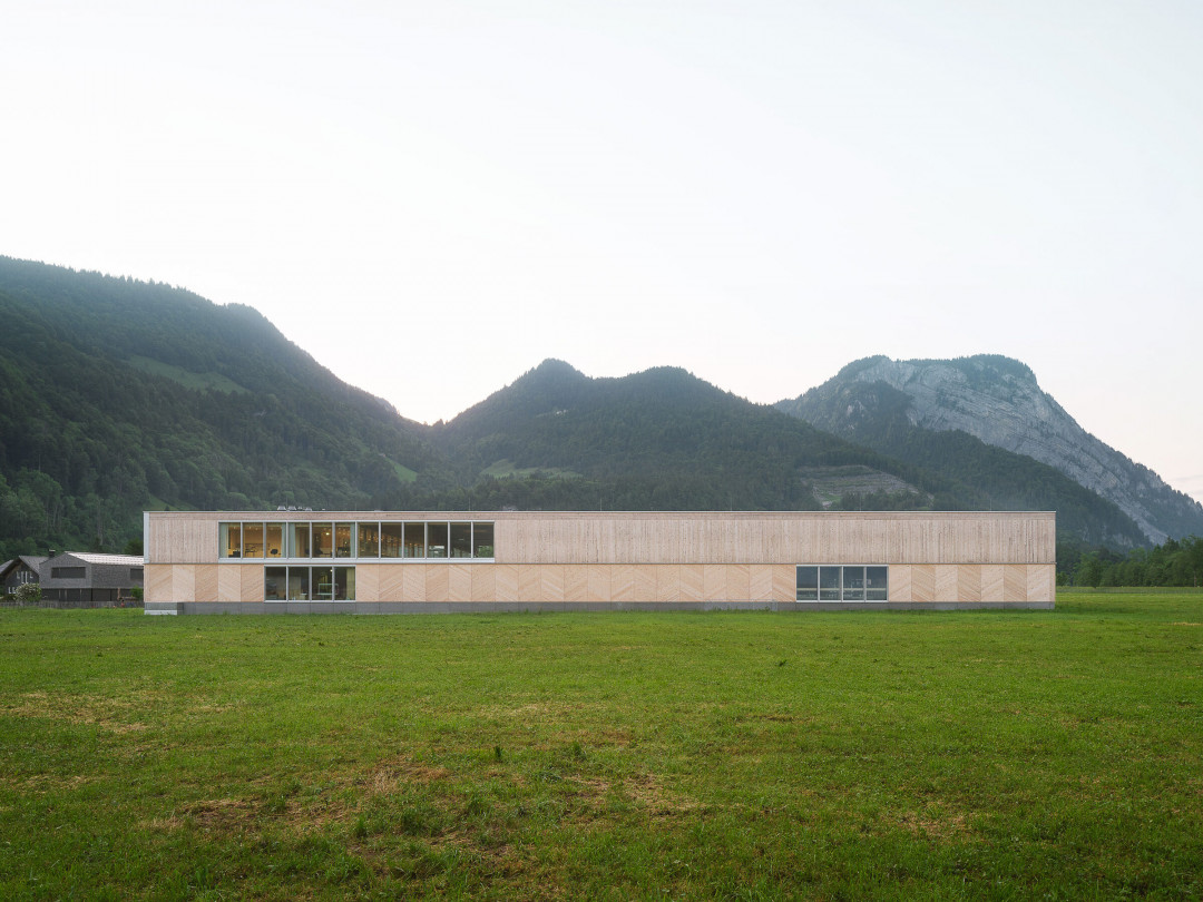 1910 yılında Anton Rüscher tarafından kurulan Tischlerei Rüscher, marangozluk alanında dört nesildir hizmet veriyor. Ancak sektördeki gelişmeler ve makinelerin büyümesi, şirketin eski tesislerinin kapasitesini zorlamaya başladı. Bu nedenle Simon Moosbrugger, Rüscher'in ihtiyaçlarını karşılayacak modern bir üretim salonu tasarladı.