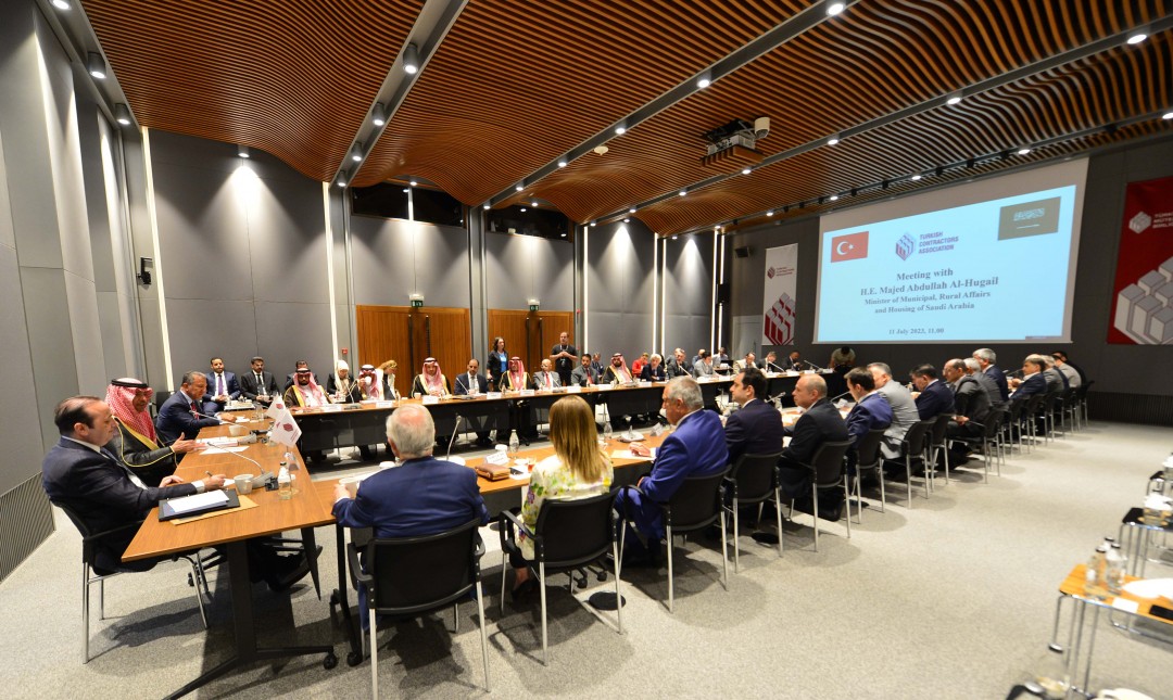 Türkiye Müteahhitler Birliği (TMB), Suudi Arabistan Belediye, Kırsal İşler ve Konut Bakanı Majed Al Hugail başkanlığındaki Suudi heyeti 11 Temmuz 2023 tarihinde Ankara’da ağırladı. TMB üyeleriyle bir araya gelen Bakan Hugail, toplantıda yaptığı konuşmada, ülkenin 2030 vizyonu kapsamında belediyelerle ilgili projeler için 100 milyar doları aşkın, konut projeleri için de yaklaşık 50 milyar dolar tutarında bütçe ayrıldığını söyledi. Türk müteahhitlerin yetkinliklerini bildiklerine ve söz konusu projelerde daha fazla Türk firması görmek istediklerine işaret eden konuk Bakan, Türk şirketlere gereken kolaylığın sağlanacağının altını çizdi. Hugail ayrıca, Türk müteahhitlik firmalarını 10-13 Eylül 2023 tarihlerinde Riyad’da gerçekleştirilecek dünyanın en iddialı emlak etkinliklerinden biri olarak görülen “The Future of Living” temalı Cityscape Global’a davet etti.