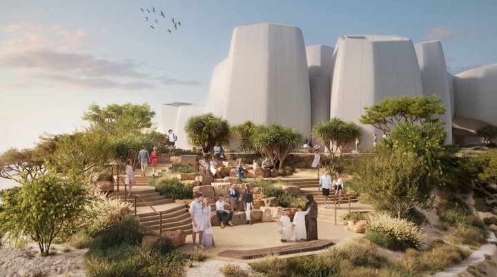 İçeride yığılmış organik formlardan oluşan, anıtsal yükselen spiral bir yapı ile işaretlenmiş kaliteli restoranlar, perakende ve konut yaşamı dahil olmak üzere günümüz lükslerinin fütüristik bir birleşimini oluşturacak. Kuleyi çevreleyen atriyumun dış kubbesi, son teknoloji holografik ve sanal gerçeklik ekranlarıyla donatılacak. Ziyaretçileri ve yerlileri başka bir dünyaya açılan bir kapıya taşımak için gerçeküstü, doğal manzaraları yansıtır.