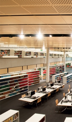 Açık otoparkın kamunun kullanımına uygun düzenlenmesi, kampüs alanının çoğunda yağmur suyunun toplanması gibi saha kullanımı ve şehircilikle ilgili kararlardan, pasif termal kontrol, enerji verimli altyapı ve sistemler, doğal aydınlatma ve havalandırma ve çevreye duyarlı malzeme seçimi gibi bina içerisinde uygulanan stratejilere kadar proje ile ilgili tüm kararlarda sürdürülebilirlik ilkeleri tasarıma dahil edilmiş. Kütüphanenin üzerinde yer alan ışık kulesi, gün ışığını içeri alıp yansıtarak kütüphanenin içlerine kadar aydınlatma sağlarken aynı zamanda eski ve ısınmış havayı da dışarı atıyor.