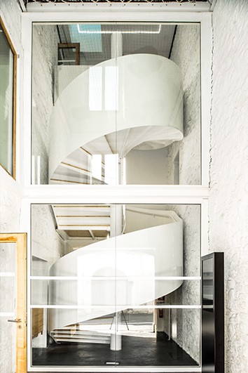 Binanın arsa üzerindeki derinliğinin yarattığı doğal ışık eksikliği mimarların tasarım kararlarında en büyük etken olmuş. Bu nedenle tasarımda; hem sokak tarafından hem de bahçe tarafından gelen ışıktan maksimum derecede yararlanabilmek için birbirine bağlı alanlar mümkün olduğunca serbest bırakılmış. Binanın ağırlıklı cam olan zemin katında bulunan danışma alanı; direkt binanın içinden geçilerek ulaşılan, nehir ve meyve bahçelerine bakan, açık bir terasa bağlanmış. Birinci katta idari bölüm ve ofisler ile grup çalışması için ayrılan ortak alanlar konumlandırılırken, en üst katta ise, restore edilmiş ahşap çerçevenin altında bir sergi alanı ile karşılama-hazırlık alanları konumlandırılmış.