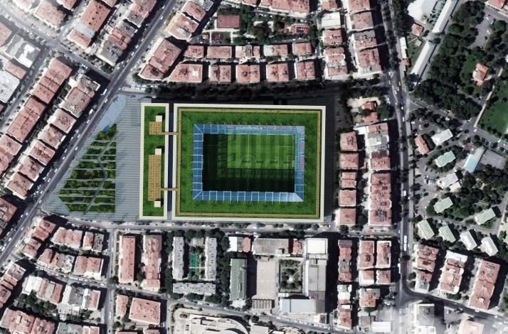 Stadyumun çelik çatısı, yoğun konut dokusu içinde çevre sakinleri için bir kaçış ve nefes alma alanı olarak değerlendirilmiştir. Bu bakış açısına bağlı olarak çatı yeşil çatı olarak tasarlanmış ve yürüme parkurları ile çatı üzerinde dolaşıma imkân sağlanmıştır.