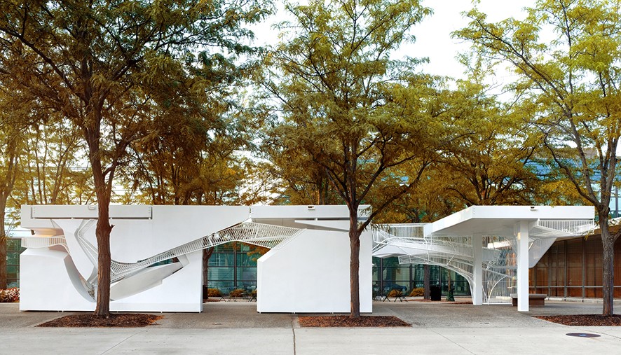 Tarihi bir kalıcılığı kanopi etrafında geometrik tamamlayıcılar ile bağlayan mimarlar böylelikle site içinde yeni bir kamusal alan yaratmıştır. Oyler Wu yapıyı çevreleyen çelik sistemli duvarları kimi yerde düz çizgili boşluklar ile tanımlarken kimi yerde de boşlukları oyuk halinde tasarlamıştır. Tektonik kalıntıların sofistik olarak nesneleşmesinden etkilenilerek tasarlanan alan, yeni hedefler ve yeni alanların doğduğu bir mekan olmuştur.