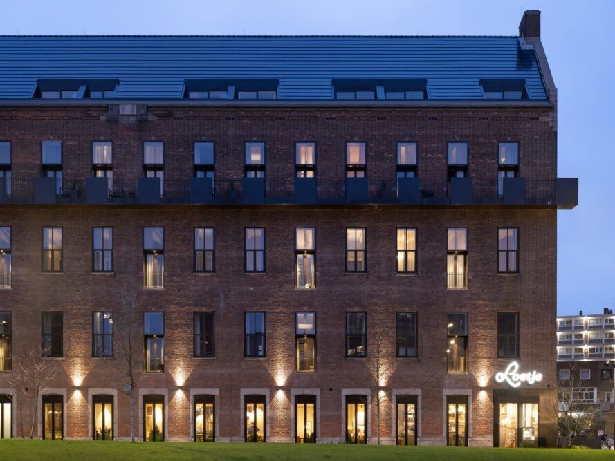1951 yılında Rotterdam'ın kurulduğu yerin yakınında inşa edilen eski PTT binası, son dönüşümünden önce on yıldan fazla bir süredir boştu. Mimarlar, yaklaşık 15 fit yüksekliğe sahip 20 stüdyo daire oluşturmak için binanın mevcut boyutlarından yararlandı. Büyük pencereler şehir silueti manzaralarını çerçeveliyor. Cephe, metal levhalar ve ince örgülü korkuluklarla tamamlanan bir dizi balkon ile iç mekâna daha fazla gün ışığı getirecek şekilde değiştirdiler.