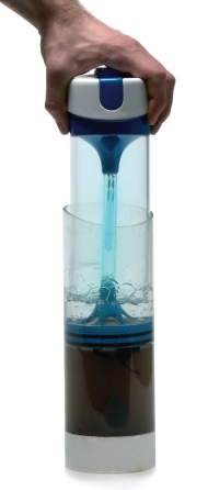 Topraklı ve kirli suyu filtreleyen ürün, 4 mikro ölçekli filtre ve UV sistemi içeriyor. Bu sayede suyu %99.9 oranında saflaştıran Saf Su Şişesi, yaklaşık bir su şişesiyle aynı boyda. Tasarımı kullanmak için su haznesine suyu koymak, ardından UV sistemini çalıştırmak yeterli. Temizleme işlemini yaklaşık iki dakika içinde tamamlayan tasarım suyu sadece zararlı etmenlerden arındırmakla kalmıyor, aynı zamanda tadını içilebilir hale getiriyor.