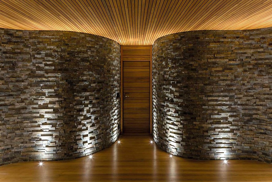 Patalano, Odun ve taşı ısı ve cam kullanarak manzara ile bütünleşip iç mekana ışığın girmesini sağlamış. Mimarlara göre doğal malzemeler, kavisli örtü, ve doğanın içine yerleşimi konut yapısının organik estetiğini ortaya koyan en önemli unsurlar.