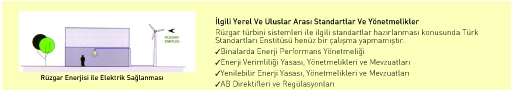 Öneri Standart: Toplu konut hane sayısı, toplam elektrik ihtiyacı, rüzgar türbini için gerekecek atıl alanların alçüleri, toplu konutun yapılacağı coğrafyanın iklimsel özelliklerinin hesapları yapılarak, en uygun ve ekonomik merkezi rüzgar türbini sistemlerinin kurulması zorunlu ve öncelikli olmalıdır.