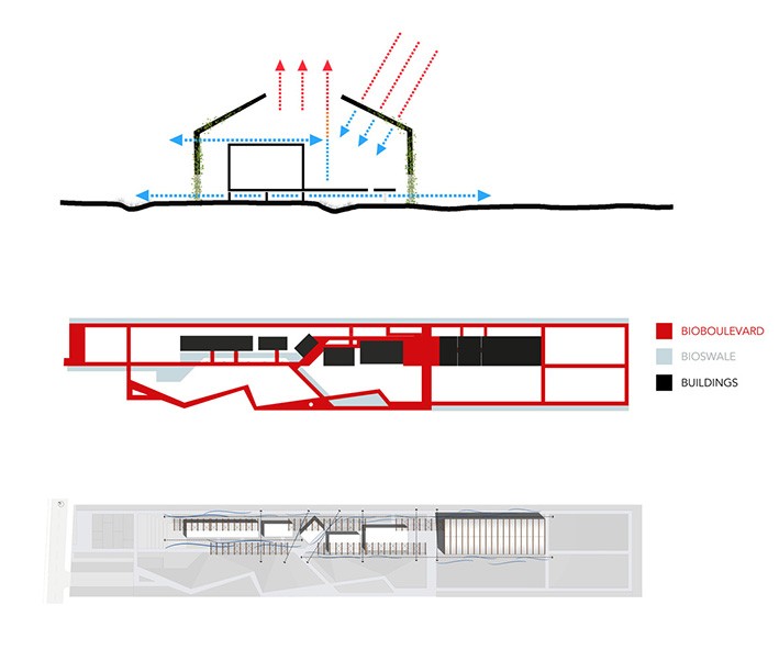 Bu omurga tasarım yapısı, kullanıcıların bölgeyi ziyaretleri sırasında enstitünün operasyonel mekaniğini öğrenmelerini ve deneyimlemelerini sağlar. Kuzey-güney aksında uzanan alana giriş, kuzey aksından sağlanmaktadır. Ana girişten başlayarak sirkülasyon omurgası, ziyaretçileri/kullanıcıları öncelikle eğitim odaklı mekanlara (laboratuvar, kütüphane gibi) getirir. Sirkülasyon omurgasının genişletilmesiyle oluşan Eko Çarşı ve eğitim mekanları ile tarımsal faaliyetlerin (sera ve dikey bahçe gibi) yapıldığı mekanlar birbirinden ayrılmaktadır. Eko çarşı alanının ilerisinde yer alan tarımsal faaliyet alanları, kullanıcıları farklı tarım tekniklerini gözlemlemeye ve deneyimlemeye davet ediyor.