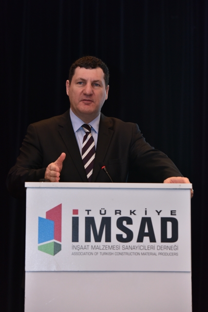 Toplantının açılış konuşmasını gerçekleştiren Türkiye İMSAD Yönetim Kurulu Başkanı F. Fethi Hinginar konuşmasına “7 Haziran seçimlerinin hemen sonrasında gerçekleştirdiğimiz Gündem Buluşmaları Toplantımızda 2015’in tamamının "kayıp yıl" olma riskini tartışmıştık, yılın sonuna yaklaşırken ortaya çıkan rakamlar 2015 yılında frene bastığımızı bize net bir şekilde gösterdi. Rakamlara baktığımızda; inşaat malzemeleri sanayi üretiminin 2015 yılı ilk çeyreğinde yüzde 6,7 küçüldüğünü, ikinci çeyrekte yüzde 1,4 büyüdüğü, üçüncü çeyrekte ise yüzde 0,3 gerilediği sonucunu görüyoruz. Senenin ilk dokuz ayında inşaat malzemeleri sanayi üretimi ortalama yüzde 1,9 oranında küçülürken, alınan yapı ruhsatları yüzde 24,8, alınan konut yapı ruhsatları yüzde 25,2, alınan konut yapı ruhsatları daire sayısı ise yüzde 23,6 oranında azaldığı görüldü. Yılın ilk on ayında özellikle yabancılara konut satışının etkisiyle konut satışlarında yüzde 12,3 artış oldu. Yılın ilk on ayında yabancılara konut satışında yüzde 19,5 artış yaşandı. Özellikle belirtmekte fayda var ki; yılın ilk dokuz ayında yabancıların gayrimenkul alımı yüzde 6,6 azalmış. Yani yabancı yatırımcının daha çok konut projelerine yöneldiğini gözlenmiştir. İhracat rakamlarına bakıldığında ise yılın ilk dokuz ayında inşaat malzemesi sektörü yıllık ihracatının yüzde 14,3 düşerek 18,7 milyar dolara gerilediği görülüyor. İnşaat malzemesi sektörü yılsonu kapanışının ise 19 milyar dolar seviyelerinde gerçekleşeceği öngörülüyor. Ciddi bir düşüşün olduğu inşaat sektörünün, son gelen verilere göre, 2015 yılını yüzde 1 büyüme ile kapatılacağı tahmin ediliyor” dedi.