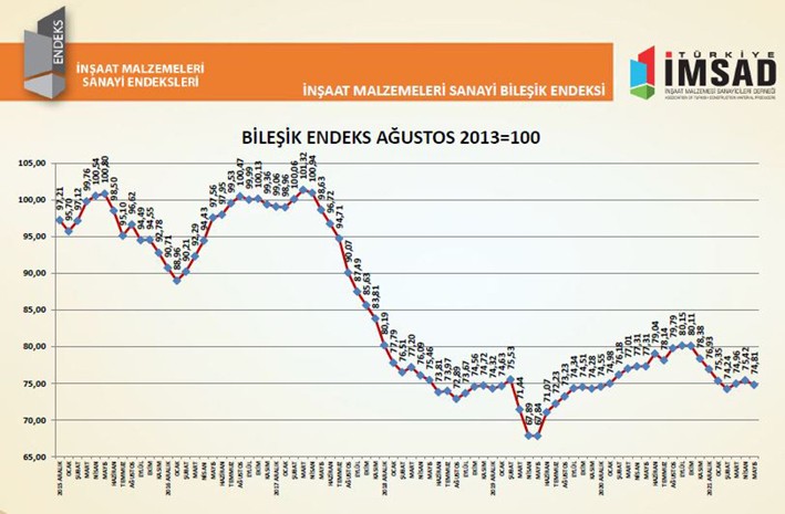 Türkiye İnşaat Malzemesi Sanayicileri Derneği (Türkiye İMSAD) tarafından hazırlanan İnşaat Malzemeleri Sanayi Bileşik Endeksi mayıs ayı sonuçları açıklandı. Bileşik Endeks, yüksek sezona rağmen çalışma gün sayısındaki azalma nedeniyle bu dönemde geriledi. Yüksek maliyetler, yüksek enflasyon ve TL’deki değer kaybı gibi ekonomik unsurlar endeksi sınırladı.