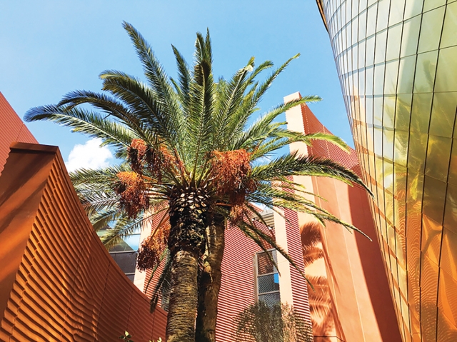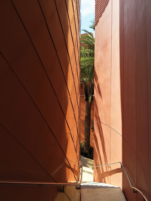 Çöl havasını yansıtan bina aslında gölge bir yere ihtiyaç duyulabilecek her iklime uygun. Görkemli olmasının yanı sıra işlevli de olan yüksek kanyonvari duvarları ziyaretçilerini adeta içeri davet ediyor.