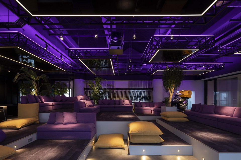 Platform alanı hem oturma ünitelerinin düzeni hem de aydınlatmasıyla sürekli değişip dönüşebilen, farklı senaryolara açık dinamik bir mekân olarak ele alınmış. Böylece, mesai saatleri içinde çalışılabilen, sunumlar esnasında projeksiyon perdesinin açılıp kanepelerin kaldırılmasıyla sandalyelerin kurulabildiği bir sunum alanına dönüşebilen, iş çıkış saatlerinde pilates seanslarına ve konser etkinliklerine sahne olan, Cuma günleri happy hour davetlerinin düzenlenebileceği bir parti alanına dönüşebilen bir alan oluşturulmuş.