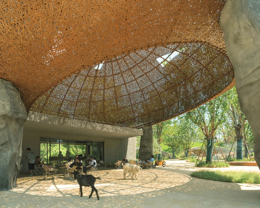 Çin’in Wuhan kentinde 57 dönümlük geniş bir araziye yayılan LuxeIsland Farm, doğa eğitimi ile kültür turizmini alışılmadık bir mimari dille harmanlıyor. Various Associates imzası taşıyan proje, ziyaretçileri toprakla bütünleşik yapılar ve açık hava sergi alanları arasında gezinen geyiklerin, keçilerin eşlik ettiği bir deneyime davet ediyor. Öyle ki LuxeIsland içinde gezinirken kendinizi gerçek bir açık hava çiftliğinde hissediyorsunuz.