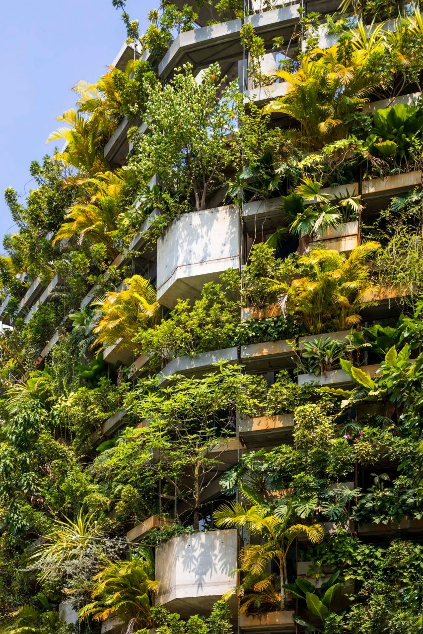 Cephe çeşitli yerel bitkileri barındıran ve geniş bir şekilde güneşe bakan asılı bitki saksılarının bir araya gelmesiyle şekilleniyor. Mimarlar "Bu yeşil yaklaşım güvenli gıda ve minimum enerji tüketimi ile rahat bir ortam sağlayarak şehrin sürdürülebilir geleceğine katkıda bulunacak." dedi.