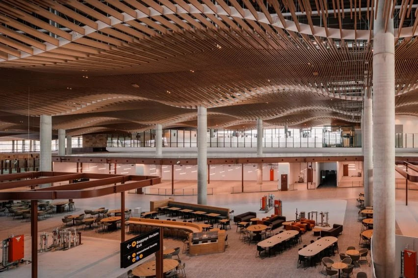 Sıcak tonlardaki iç mekân malzemeleri, yolculara samimi ve huzurlu bir atmosfer sunarken, dış mekânla kurulan kesintisiz ilişki doğal bir yolculuk deneyimi vadediyor. Havalimanının 2026 yılı sonuna kadar hizmete açılması planlanıyor.