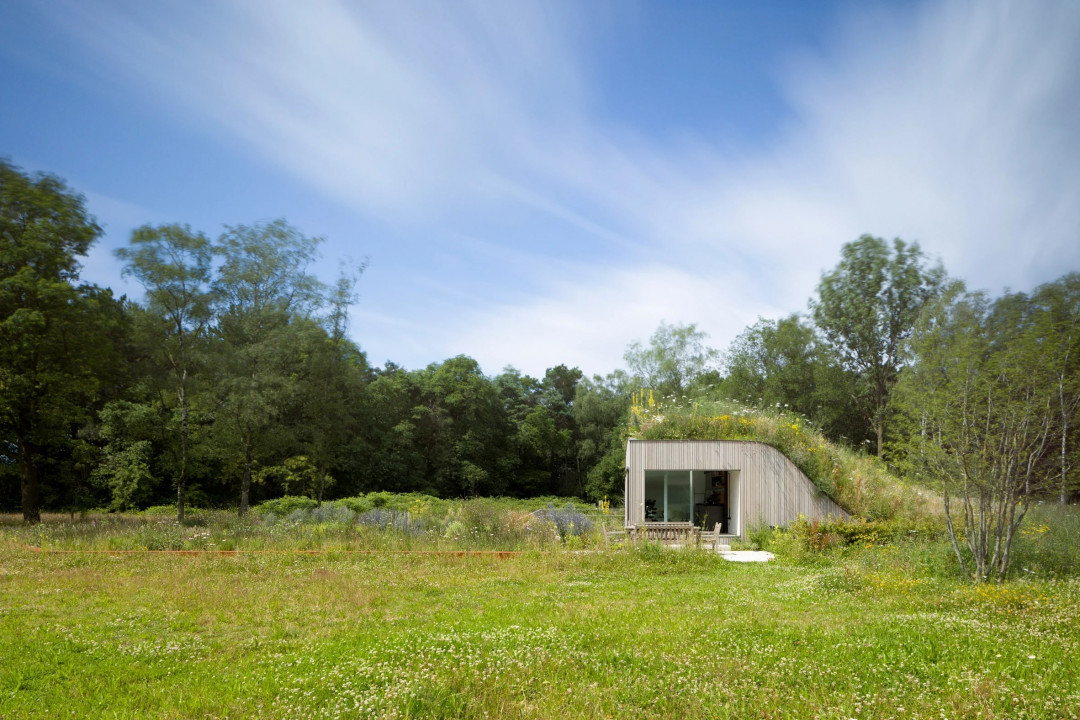 Koruma altındaki bir doğa rezervinin kenarındaki bir çayırda yer alan sürdürülebilir mimari örneklerden House Under the Ground, eski bir keçi kulübesinin parametrelerine uyuyor. Evin yerden görünen kısmı, binanın yüksekliğini sınırlamak ve manzarayla bütünleşmek için tasarlanan kemerli şekliyle tanımlanıyor. Yapısı yerinde dökülmüş betondan inşa edilirken, açıkta kalan cepheler dikey ahşap levhalarla kaplanmış.