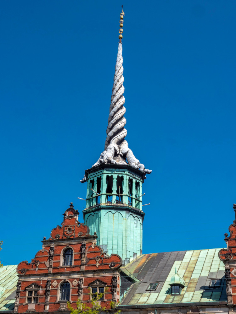 1619 ve 1640 yılları arasında inşa edilen Børsen, Felemenk Rönesans tarzının tanınmış bir örneğidir. Popüler bir turistik cazibe merkezi haline gelmesini sağlayan kendine özgü şekilli kulesi, sözde düşmanlardan ve yangından korumak için ejderhalarla süslenmiştir. Yapılar 17. yüzyıl boyunca ticaret ofislerine ve bir pazar yerine ev sahipliği yapmıştır. İç mekanları 1855 yılında yenilenen yapı, 1974 yılına kadar Danimarka borsasına ev sahipliği yapmıştır. 2018 yılından bu yana Danimarka Ticaret Odası'nın genel merkezi olarak hizmet vermektedir.