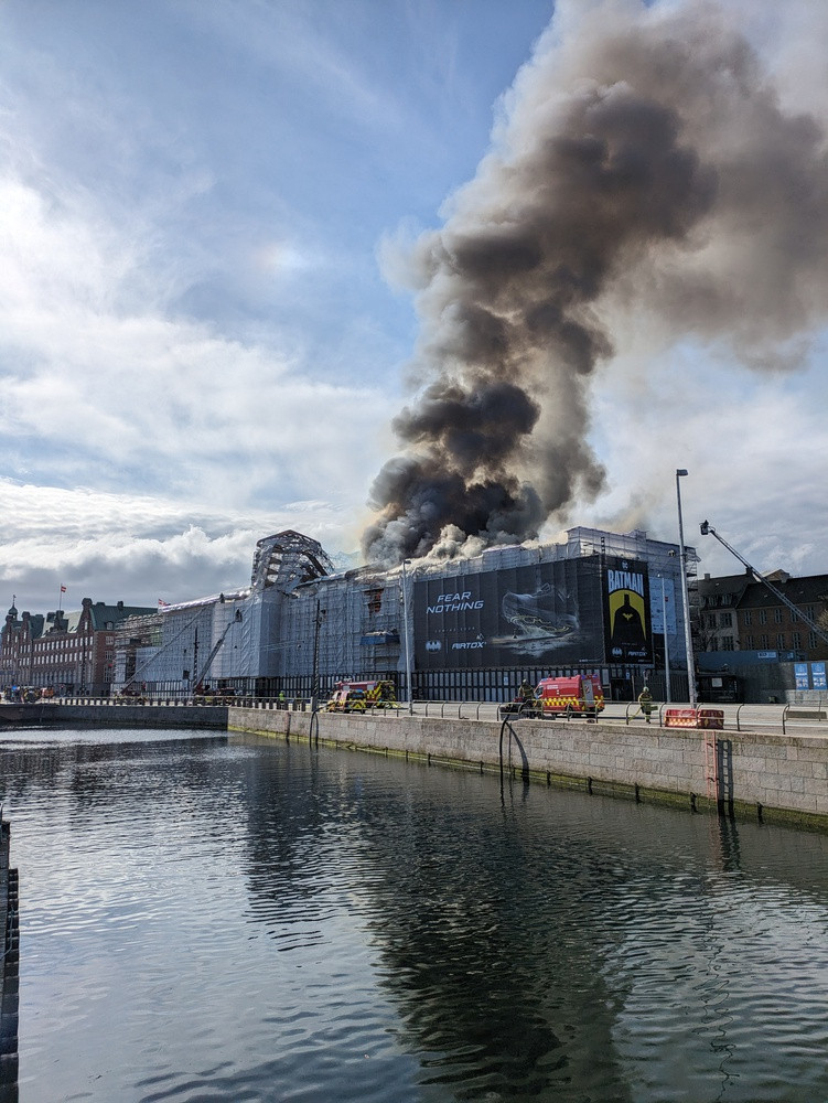 Danimarka'nın başkentinde 16 Nisan sabahı çıkan yangın, şehrin en eski simgelerinden biri olan Kopenhag Eski Borsası'nı küle çevirdi. Yangında, iç içe geçmiş dört ejderhanın kuyrukları şeklinde olan 56 metre yüksekliğindeki Ejderha Kulesi çöktü. Yetkililere göre yangının başlamasından sadece birkaç saat sonra 17. yüzyıldan kalma Børsen binasının yarısı yok oldu. Olay sırasında yapıda yenileme çalışmaları yapılıyordu. Acil durum çalışanları, personel ve yoldan geçenler, eski borsada bulunan tarihi sanat eserlerini kurtarmak için iş birliği yaptı.