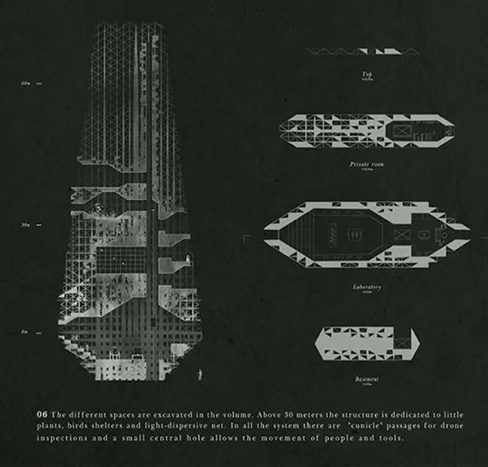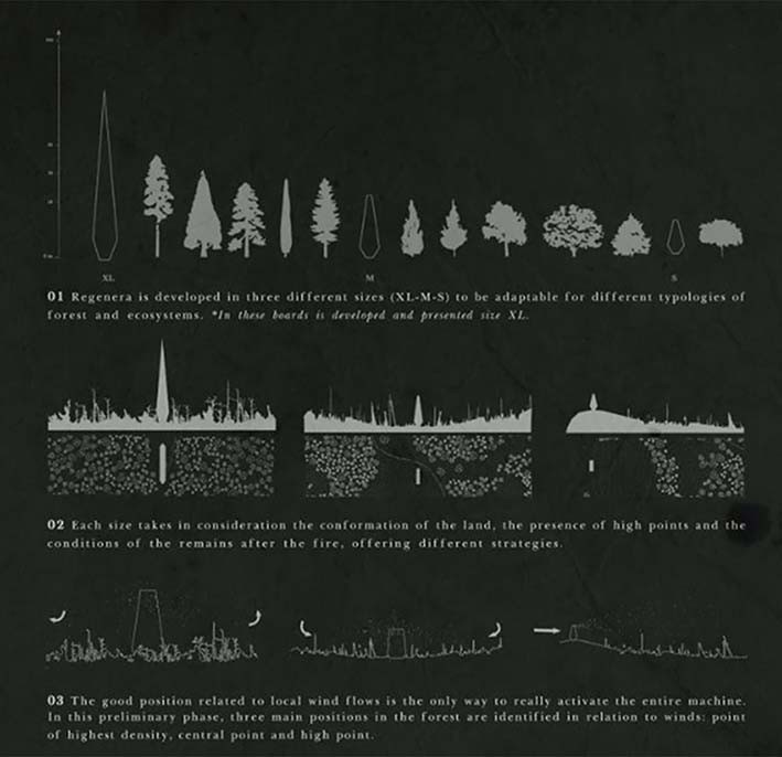 Regenera gökdeleni, yapının her bir parçasını dikkatli bir şekilde programlama ve çeşitlendirme olanağı yaratan; aynı zamanda erozyon ve sürekli dönüşüm tarafından belirlenen bir yaşam döngüsünü tanımlayan yeni bir paradigma önermektedir. Yapıyı inşa etmek için seçilen malzemeler, aynı zamanda ormanın kendini yenilerken ihtiyaç duyduğu malzemeleri içerir. Bu malzemeler yavaş yavaş çözülürken, geçici bir barınak olma özelliği de taşır. Bu tasarım, hepsi ölü bir ekosistemin gerekliliklerini ve ihtiyaçlarını anlamak için birlikte çalışan kimyagerler, firocoğrafyacılar, meteorologlar, mühendisler ve biyologlardan oluşan bir ekiple başarılı olabilir. Gökdelen, mimari ile doğayı, yapı ile ekosistemi, zaman ile erozyonu ve gökdelenlerle ormanları ilişkilendirmenin yeni bir yolunu gösteriyor. Orman iyileşirken Regenera çözülüyor.