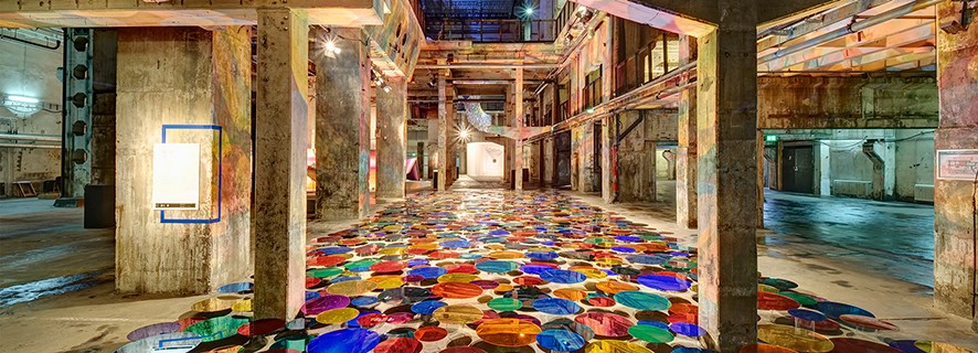Berlin’deki etkileşimli sanat sergisi perspektif oyun alanında renk yansımalarıyla iç mekan boyunca endüstriyel alanı değişime uğratıyor. Akrilik aynalar kullanılarak renk yansımalarıyla farklı yüksekliklerde matris alanlar oluşturuyor.