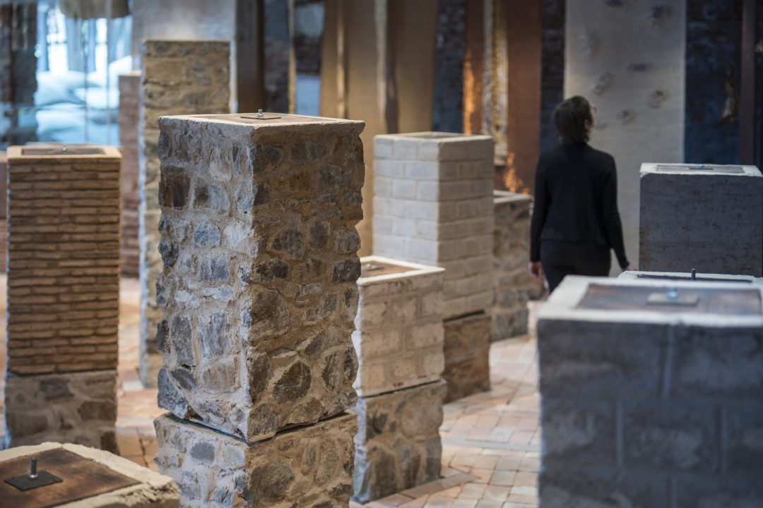 Mimar ve sanatçı Soumyia Jalal’ın tekstil işleriyle çevrili sergi alanı, toprağın dokusunu ve zanaatın izlerini ziyaretçilere hissettirmeyi amaçlıyor. Tavan ve duvarlarda kullanılan malzeme örnekleri, aletler ve yerel objeler, ziyaretçiyi Fas’ın kadim toprak yapı geleneğinin içine çekiyor.