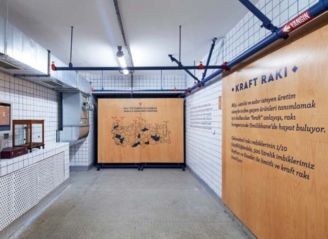 2020 yılında başladığımız Mey Diageo Rakı Deneyim Merkezi projesi, rakının ham maddesi olan üzüm bağlarının bulunduğu Manisa’nın Alaşehir bölgesinde yer alıyor. Bu fabrikada üretilen çok özel bir ürün. O yüzden bizim için hem ilginç hem de çok keyifli bir proje oldu. Bizden Alaşehir’deki rakı fabrikasında rakının kültürünü, üretim sürecini anlatan bir deneyim merkezi tasarlamamız istendi. Fabrikanın çevresi bağlarla çevrili, Ege bölgesinin ve Türkiye’nin en geniş üzüm bağı bölgesi. Çekirdeksiz Sultaniye üzümleri burada yetişiyor ve bu üzümler rakı üretiminde kullanılıyor. Fabrikaya uçsuz bucaksız bağların arasından geçerek ulaşabiliyorsunuz. İlk proje alanını ziyaret ettiğimde çok etkilenmiştim. Sonsuz görünen bağların arasından gidiyorsunuz. Burada fab rikanın geçmişinden de bahsetmek gerek. Türkiye’nin ve dolayısıyla dünyanın en büyük rakı fabrikası, aslında Alaşehir 1995 yılında faaliyete geçiyor ama bütün fabrika 1932 yılında yapılmış olan Tekirdağ’daki fabrikanın taşınmasıyla kuruluyor. Benim Tekirdağ fabrikasını da gezme fırsatım oldu. Çok değerli ve geniş kapsamlı bir külliyat var, biz projeyi kurgularken de bu külliyattan epeyce faydalandık. Bir yanda da iliklerimize kadar işlemiş olan, duygusal bağ kurduğumuz, anılarımızla eşleşen, hala güncelliğini koruyan veya korumaya çalışan rakı kültürümüz var. 2013 yılından itibaren gelen son yasaklarla birlikte rakıyla ilgili iletişim yapmak tamamen yasaklandı. Bütün markalar son reklamlarını yaptılar ve dark marketing süreci başladı. İletişim stratejisi reklam yoluyla vadetmekten çok deneyim yaşatmaya döndü. Bu bizim projedeki büyük problemimizdi. Ancak tek problem bu değildi. Buna ek olarak 1932’ye kadar uzanan içerikle, 1995 yılında herhangi bir estetik kaygı güdülmeden yapılaşmaya başlayan ve sürekli büyüyen, yamalı bohça gibi dev gibi bir fabrika kampüsünde, sınırlı bütçeyle nasıl insanları İstanbul’dan kalkıp 5 buçuk saatlik yorucu bir yolculuk yaptırmaya değer bir deneyim merkezi yapabiliriz?