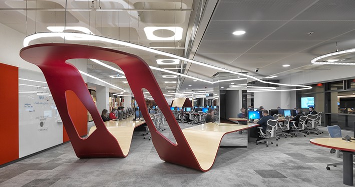 Bu katın renk teması kırmızı olup, zemin hem batı hem de doğu kanatlarını kaplamaktadır. Katın batı kanadı operasyon bölümü, doğu kanadında ise kafe, fitness ve sosyal aktivite alanı bulunuyor. Merkez alana girildiğinde, sizi 3 yayı olan ve batı kanadına kadar devam eden muazzam bir döngü masası karşılıyor Aydınlatma, üst katta bu sonsuz tabloya göre tasarlanmış ve bu süreklilik zeminin ana fikrini oluşturmaktadır. Doğu kanadında yer alan kafe ve serbest zaman aktivite alanı, amorf geometrik şekil ve renklerle; canlı, dinamik bir atmosferde tasarlanmıştır.