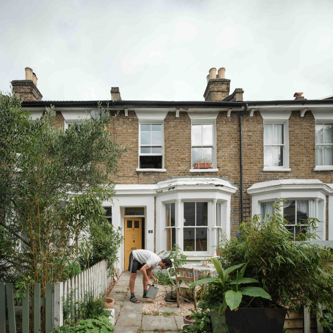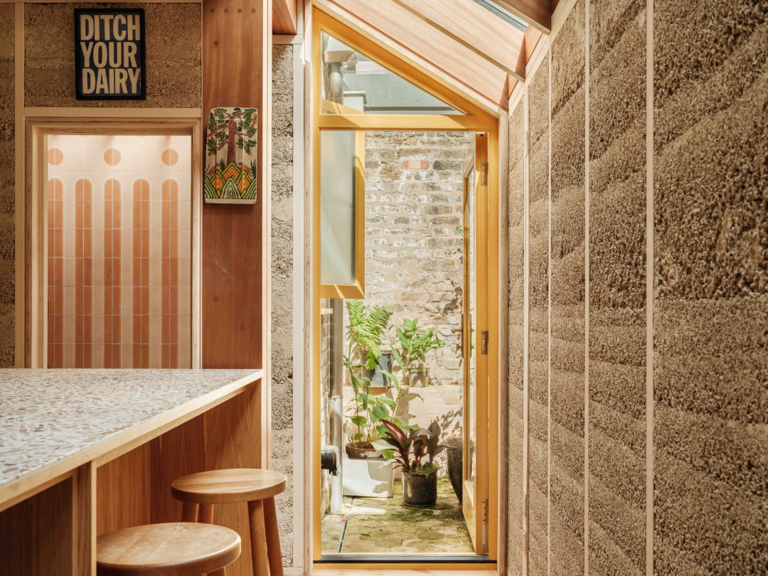 Evin yenilenmesi ve genişletilmesi, çevreye duyarlı bir müşteri (sürdürülebilir tarım geçmişi olan bir şef) tarafından yaptırılmış. 77 m²'lik (829 fit kare) iki katlı Viktorya dönemi teras, yoğun nüfuslu, araçsız bir sokakta yer alıyor. Ev, arka bahçesi olmayan dar bir arsada ve küçük bir dış alan şeridinde yer alıyor. Cairn'in görevi, mevcut malzemelerin yeniden kullanımı ve yeniden işlevlendirilmesi yoluyla sürdürülebilir bir tasarım yaklaşımı benimseyerek çağdaş, aydınlık ve havadar bir mutfak ortaya çıkarmak. Stüdyo, hem eski hem de yeni malzemeleri iç içe geçirerek kullanılabilir orijinal unsurları belirledi, korudu ve yeniden kullandı. Kenevir beton (duvarlar), mantar, ahşap lifi, ahşap yünü ve kireç sıva kullanımı da dahil olmak üzere tüm yeni malzemeler biyo-bazlı.