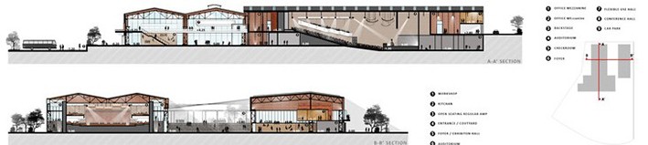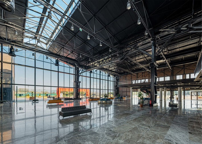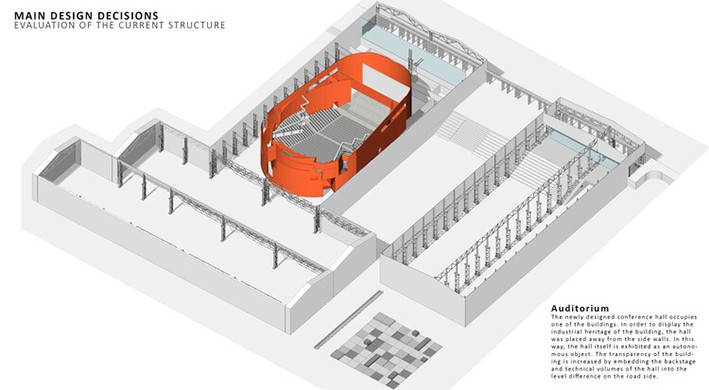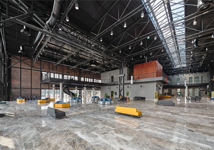 Binanın mevcut yapısı ve kabuğu endüstriyel bir mirastır. Tüm kampüsün tasarımının ana stratejisi bu yapının korunması ve sergilenmesidir. Bu amaçla tüm yapı açık plan stratejisi ile tasarlanmıştır.
